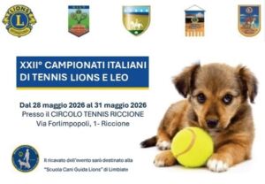 Dal 28 al 31 maggio 2026, presso il Circolo Tennis Riccione, in via Forlimpopoli 1, Riccione, si terranno i Campionati Italiani di Tennis Lions e Leo.