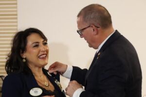 La Governatrice del Distretto Lions Ta1 Antonella Genovesi e il Vicepresidente di Lions International Mark Lyon